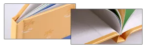 Leimbindung: die Seiten werden in das Hardcover fest eingeleimt.