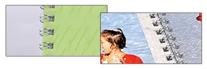 Ringbindung: Spiralbindung; mit einem Metalldraht wird eine Doppelspirale gebildet, die durch die vorher gelochten Buchseiten verläuft